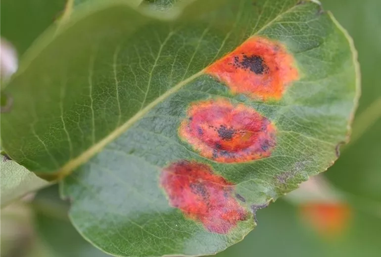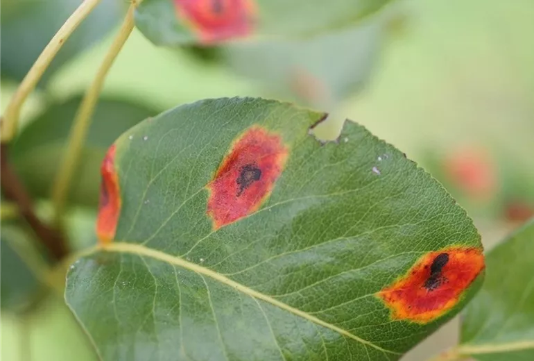Die genannten Schäden werden durch einen Rostpilz (Gymnosporangium sabinae) verursacht, der neben der Birne auch verschiedene Wacholderarten befällt und dort den sogenannten Wacholderblasenrost verursacht.