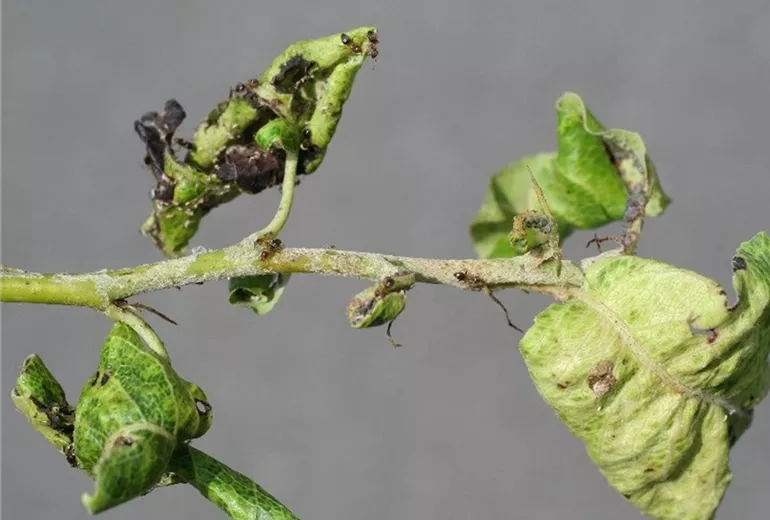Neben den genannten beiden Arten, kann auch die Grüne Apfelblattlaus an jungen Trieben der Birne vorkommen.