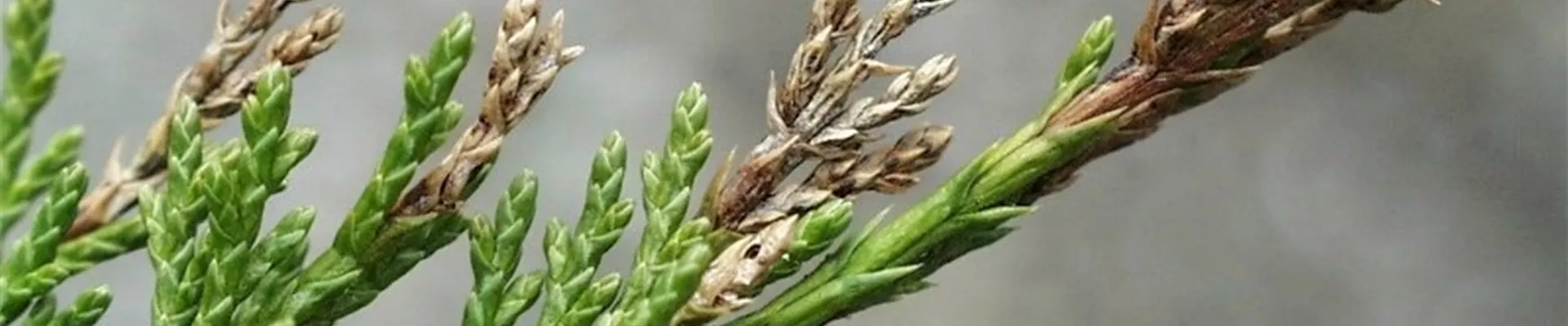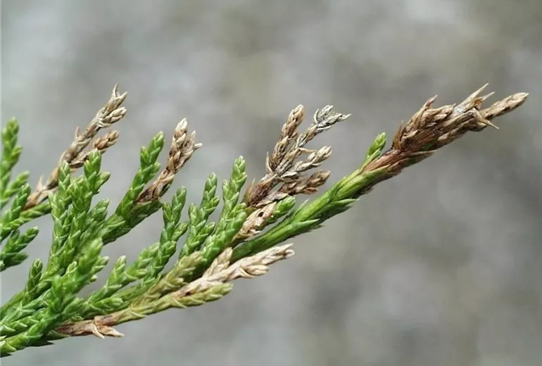 Neben Wacholder werden auch Scheinzypressen (Chamaecyparis) und Lebensbäume (Thuja) befallen.