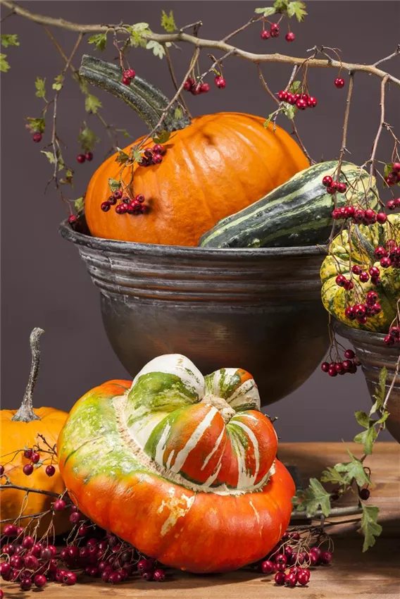 Kürbisse sind immer eine unschlagbare Dekor-Idee. Jede Kombination ist eine einmalige Kreation. Ein paar besonders schöne Exemplare vor der Eingangstür platziert, und das Lächeln der Gäste ist garantiert. Auch als Zimmerschmuck machen sie Furore. Aus kleinen und großen Schalen lachen sie farbenfroh hervor. Zum Highlight wird der Kürbisspaß natürlich am Halloweentag. Schon das Bearbeiten der robusten Pflanze, damit sie zum coolsten Kopf unter ihren Artgenossen wird, macht der ganzen Familie Freude. Der Einsatz mit dem dezenten Hinweis „Süßes oder Saures“ bringt dann den erwünschten Erfolg. An den meisten Haustüren sorgt die Gartenfrucht für die erfreulichen kleinen Zuwendungen, die Kids so lieben.